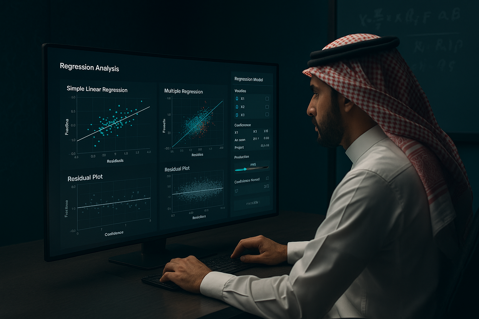 يركز هذا المقرر على دراسة وتحليل العلاقات الإحصائية بين المتغيرات باستخدام منهجيات الانحدار المختلفة، مع التركيز على الجوانب النظرية والتطبيقية. يتناول المقرر المفاهيم الأساسية للانحدار وأنواعه، بما يشمل الانحدار الخطي البسيط والانحدار الخطي المتعدد، بالإضافة إلى تسليط الضوء على تطبيقاته العملية في التنبؤ وتحليل البيانات. كما يقدم المقرر أدوات تحليلية متقدمة، مثل معامل التحديد وتحليل القيم المتبقية، بهدف تحسين دقة النماذج التنبؤية واستكشاف العلاقات بين المتغيرات بشكل منهجي ودقيق. يهدف المقرر إلى تمكين الدارسين من تطوير نماذج انحدار فعالة تُستخدم في التفسير الكمي للبيانات والتنبؤ المستقبلي بأسلوب علمي يعتمد على الأسس الإحصائية.